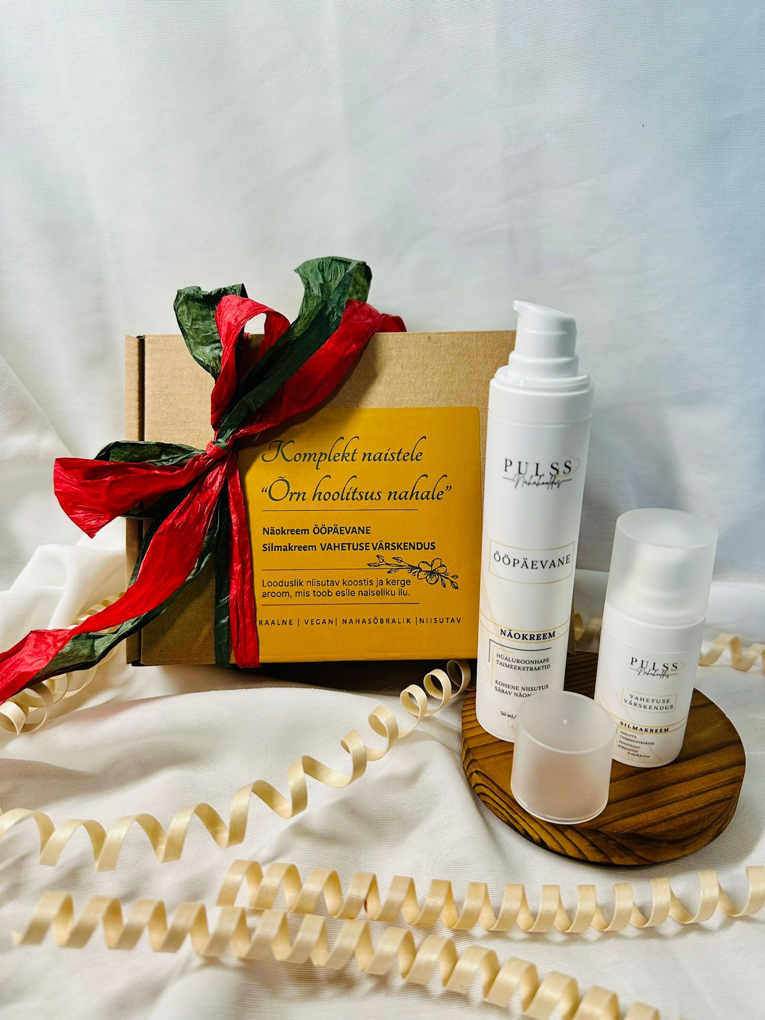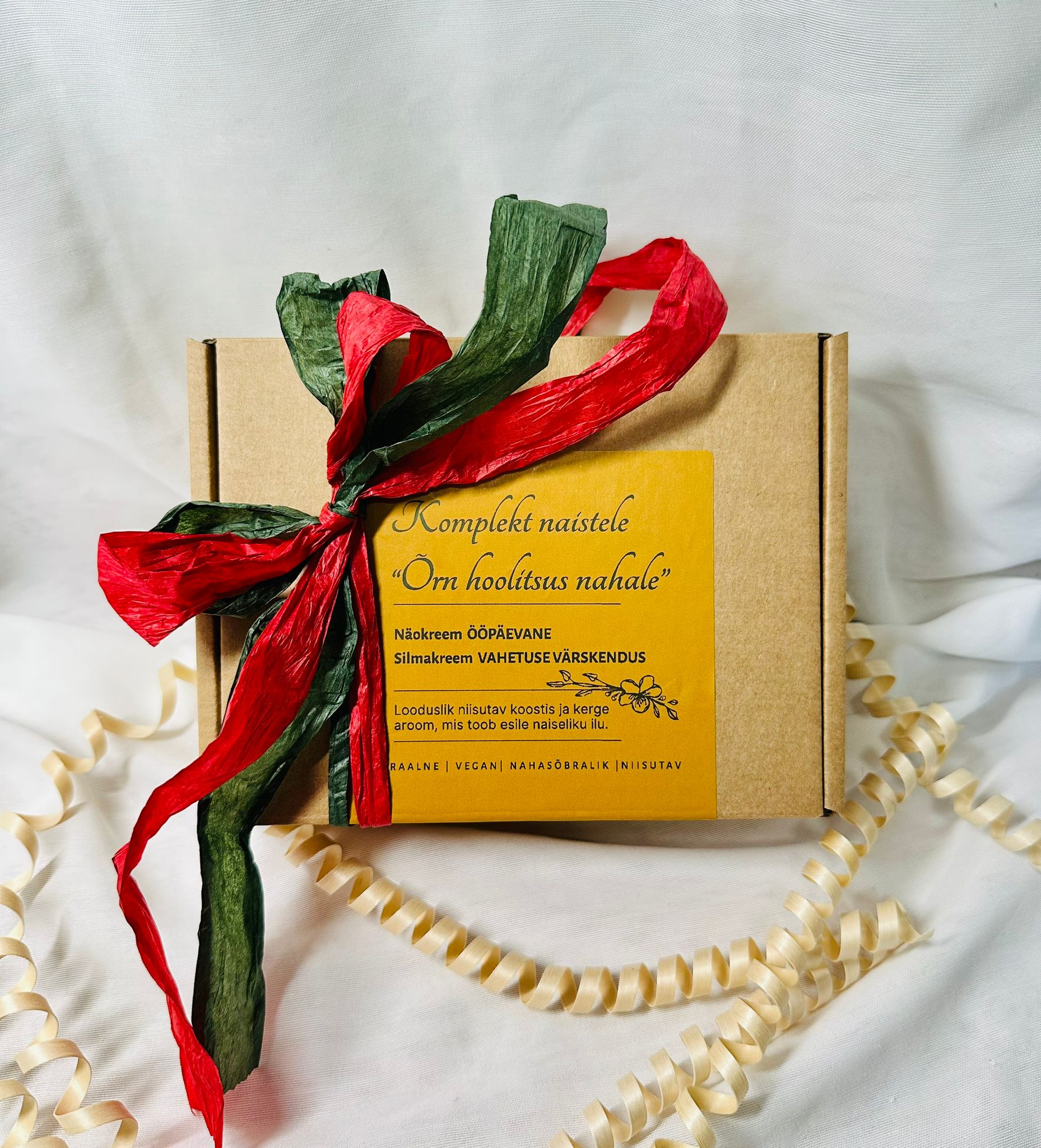 „Õrn hoolitsus nahale“ on hoolikalt koostatud kinkekomplekt naistele, mis ühendab kahte igapäevaseks kasutamiseks sobivat toodet – näokreemi ja silmakreemi. Looduslik niisutav koostis ja kerge aroom, mis toob esile naiseliku ilu.